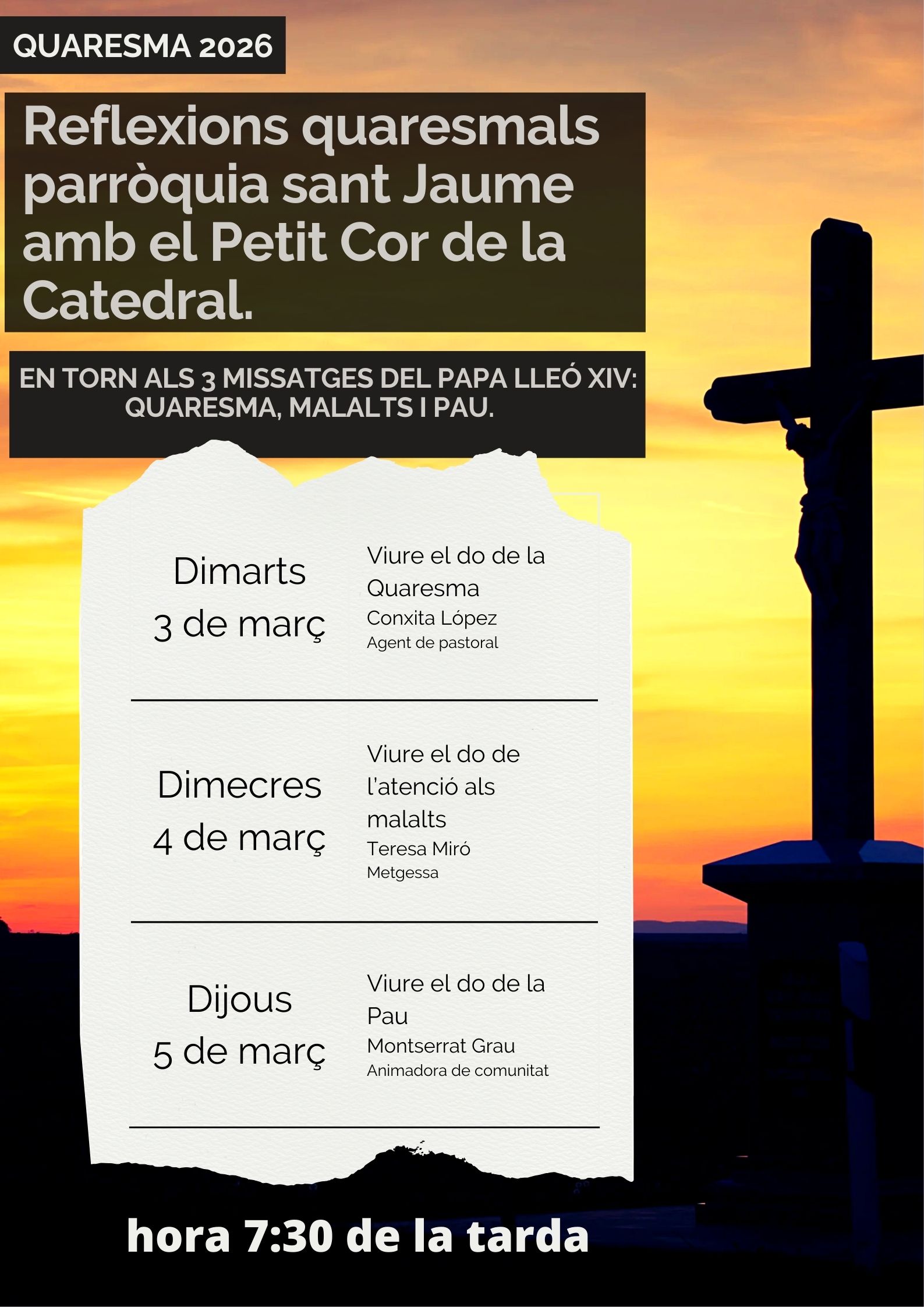 La parròquia de Sant Jaume proposa unes reflexions quaresmals en torn als missatges del papa Lleó XIV