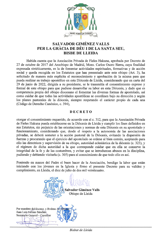 Consentiment a l'establiment a Lleida de l'Associació Hakuna