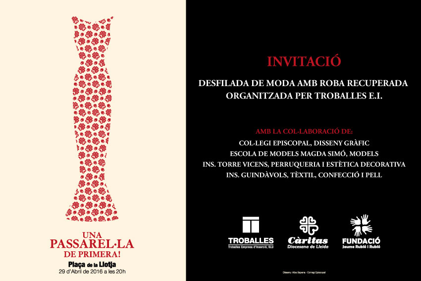 El divendres vinent 29 d'abril, la plaça de la Llotja acollirà una desfilada de moda amb roba recuperada, organitzada per Troballes. Troballes, l'empresa de reinserció laboral de Càritas, subministra roba...