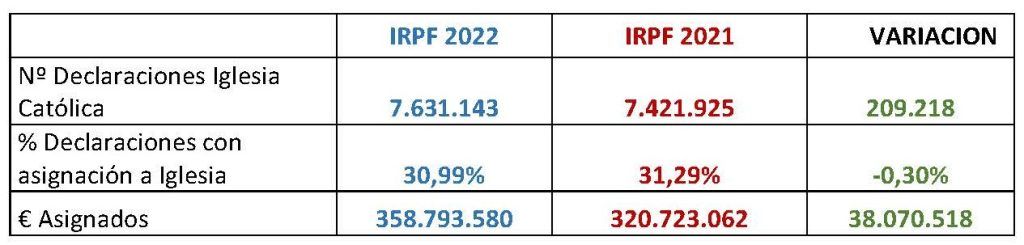 |14-12-23| La Conferencia Episcopal ha presentado los datos de la campaña de la Renta del año 2023 que corresponde al ejercicio fiscal de 2022 y, según los datos provisionales facilitados por Hacienda, el número total de declaraciones en Catalunya han ascendido a las 634.156 (+13.790) y en España a las 7.631.143 (+209.218). Así lo ha informado el vicesecretario para Asuntos Económicos, Fernando Giménez Barriocanal, que ha concretado que el importe total asignado a favor de la Iglesia Católica ha aumentado en el Estado en 38 millones de euros, un 11,9% más que en la Renta de 2022, con un total de 358.793.580 euros. En Catalunya se han recaudado 40,44 millones de euros, casi 3,9 millones más que en el ejercicio anterior.