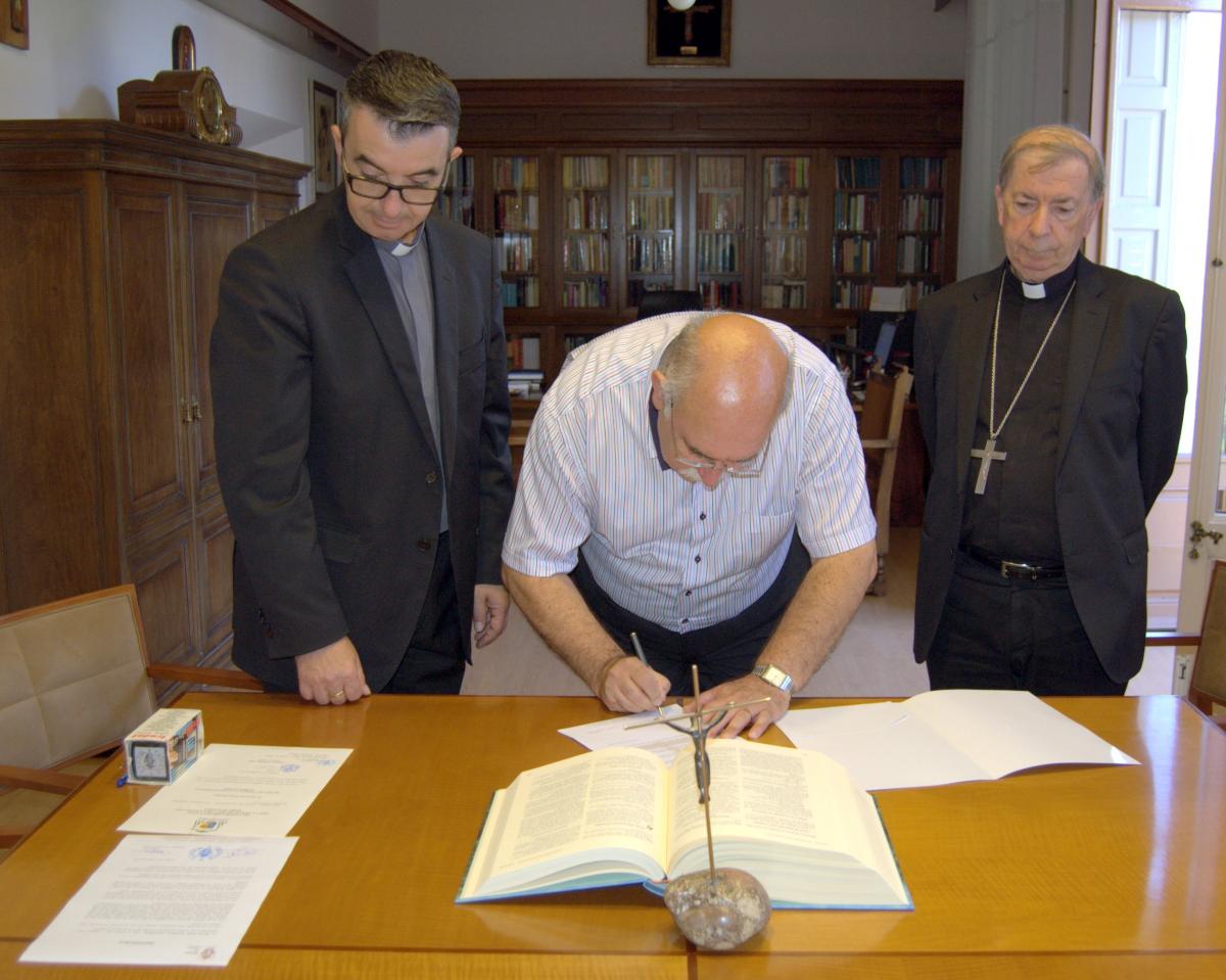 El acto ha comenzado con unas palabras del Obispo Salvador agradeciendo a Juan Luis Salinas la aceptación del cargo. A continuación, el nuevo secretario general ha leído la profesión de fe y el juramento de fidelidad. Se trata de un acto en el que el nuevo secretario general acepta los principios revelados en la palabra y la Tradición de la Iglesia. En el mismo acto hizo el juramento de fidelidad en el que pone su libertad al servicio del Obispo y de sus sucesores.