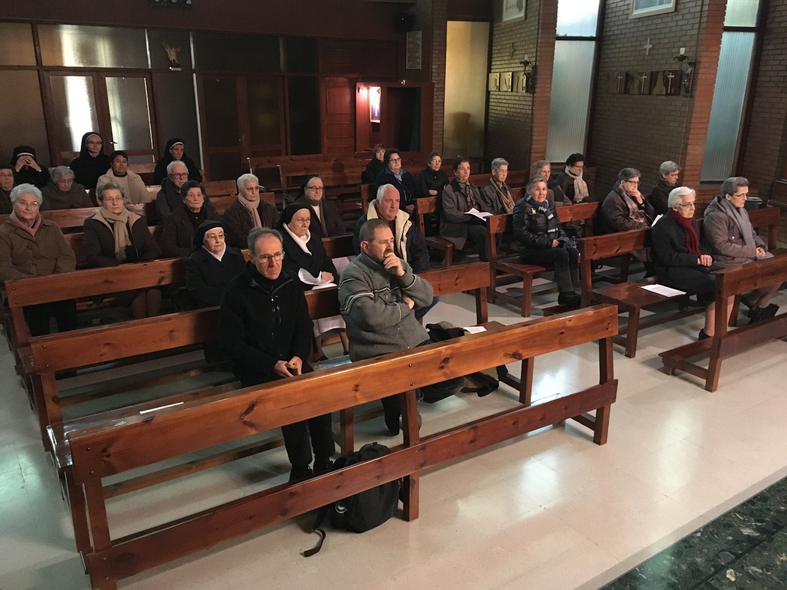 Un cop acabada l'oració per l'Església van passar a diferents sales, per grups o de forma individual, van anar parlant amb les germanetes carmelites al locutori.