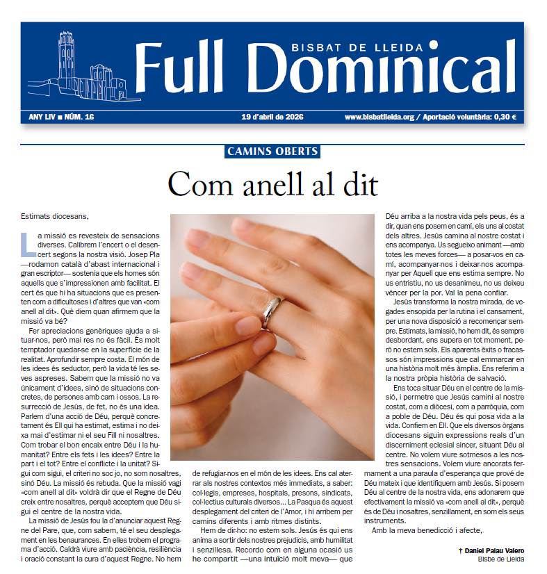 Missa Sant Joan de Déu Terres de Lleida-Centre d'Almacelles pel bisbe Daniel